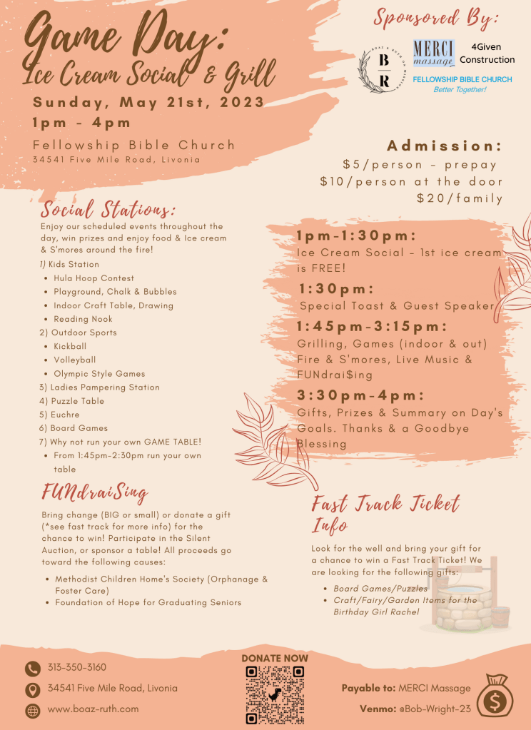 Game Day: Ice Cream Social & Grill Posted byBOAZ and RUTH on MissionMay 10, 2023May 10, 2023Posted inEvents ← BackThank you for your response. ✨ Name(required) Email Phone Attending?(required) Yes No No, but I would like to be contacted to see how I can help! Other Details: Would you like to be a sponsor? Send RSVPSubmitting form Δ Share this: Share on X (Opens in new window) X Share on Facebook (Opens in new window) Facebook Like Loading... Related